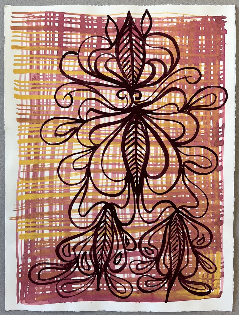 These small drawings were done while visiting Rome and represent some early research into the palmette and other decorative motifs found throughout the city. The baroque impulse, so evident in the city, leaves every touch point decorated with a flourish. This overstimulated world reflects a psychological space I find myself in when I’m drawing.