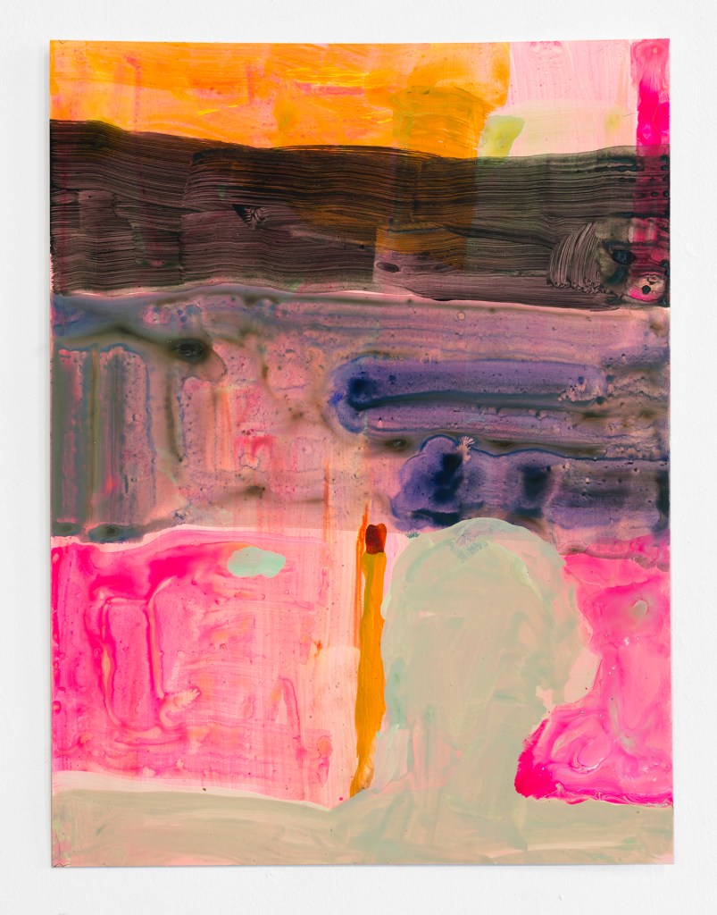 My paintings investigate physical surface, speculative architecture, and a questioning of representation in environmental space. They begin with geometric line drawings that become non-rectangular structures, supporting a mixed topography of a dyed canvas ground and subsequent layering of paint. The resulting image creates a spatial illusion, while also brushing up against the physical fact of woven fabric, as well as the natural materials of rubbed or attached stone, paint, and wood. There is interplay with transparency, structure, natural materials, and staining/dyeing. The work is in part dictated by process, though it also connects to historical painting languages. The work on paper submitted for this open call is a preliminary way for me to think about color, space, and composition. I often work off of the paper studies in building into larger paintings, and find that the use of acrylic in the studies challenges my relationship to color and material with other mediums. The “project” of painting for me has also become contingent on many things within and outside this medium, including utopian architecture, Anni Albers’ ethics of material, archives of female geologists, rock quarries, and an experience among treeless, uninhabited islands in the Bering Sea. Marked by human history, these islands and other experiences have led me to question how the condition of remoteness bears a phenomenological relationship to painting and abstraction. In addition, I consider the connection of words to rhythm and weight, as well as the overlap of writing to drawing, drawing to painting. Moving in and out of drawing and painting languages, and working between painting and sculpture, I consider the experience of a body in a space, both lost and found.