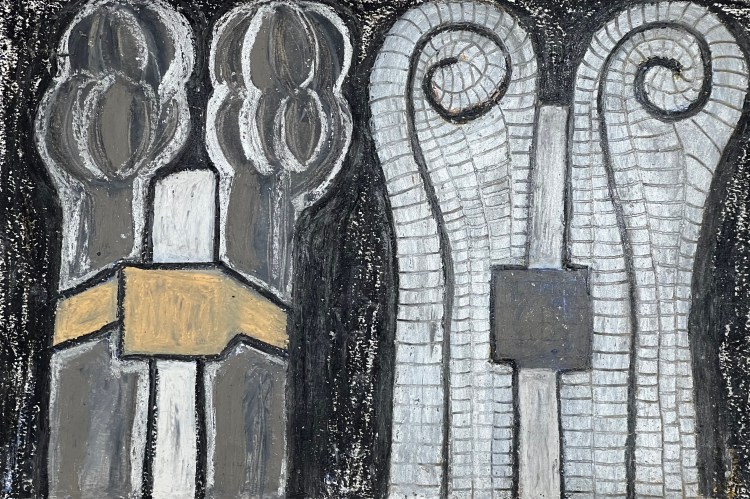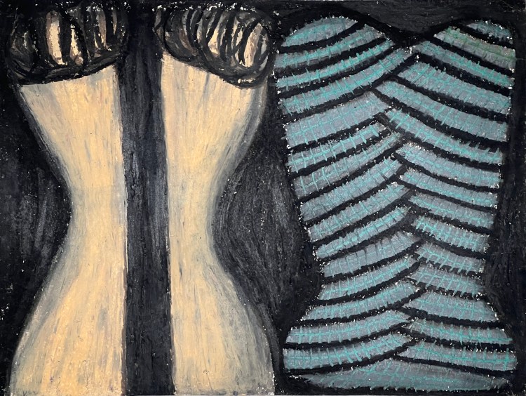 Pair, pencil, charcoal, oil pastel on paper, 9 x 12 inches, 2022, $500