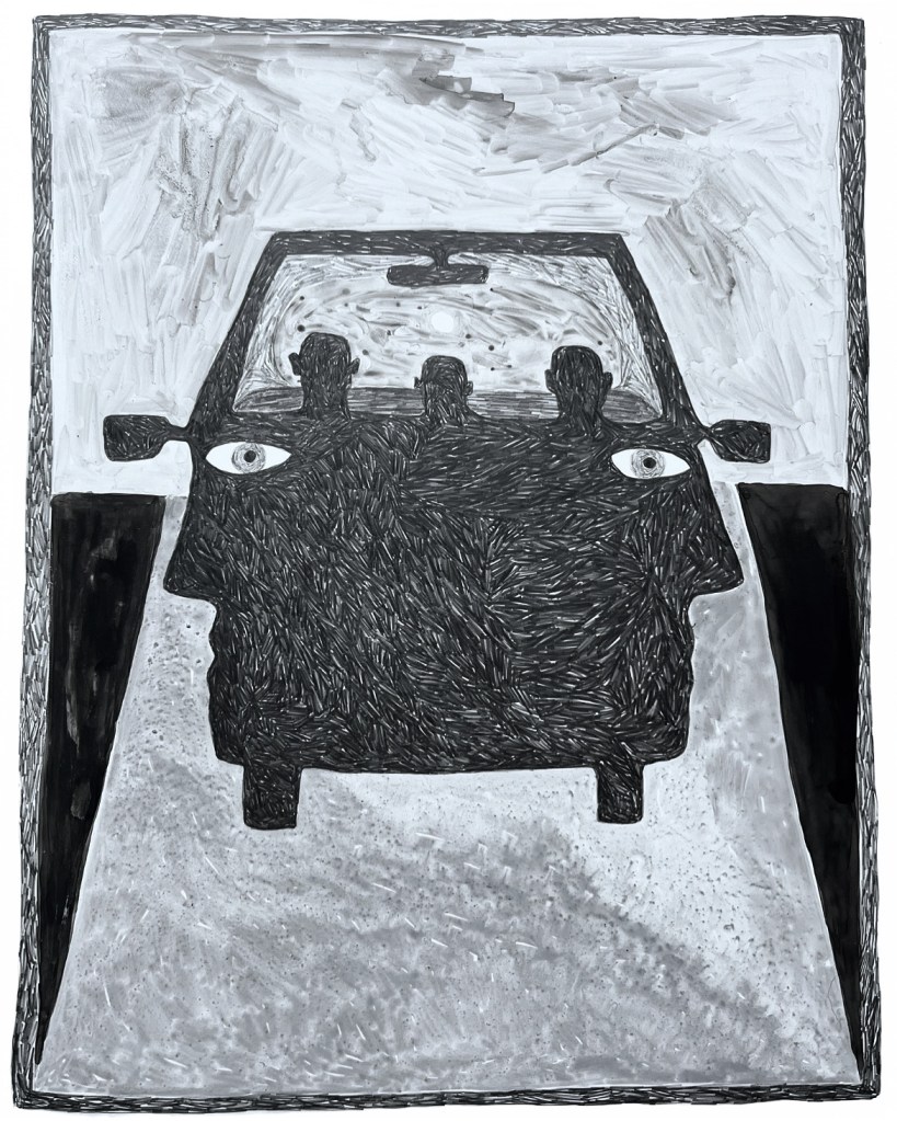 Imagery of butterflies, profiles in silhouette, moons, houses, trees and wood grain characterize the work. These symbols build both an outer world and an inner world, simultaneously reflecting the landscape of my home in Wisconsin as they point towards themes of interiority and metamorphosis. Relying on an archetypal visual language that freely oscillates between figuration and abstraction, each construction is a souvenir from a mental landscape, embodying part of the foundational physical mystery that exists in the paradoxical relationship between observation and perception.