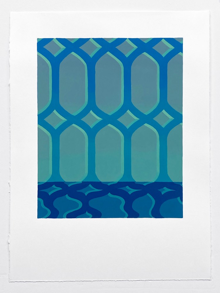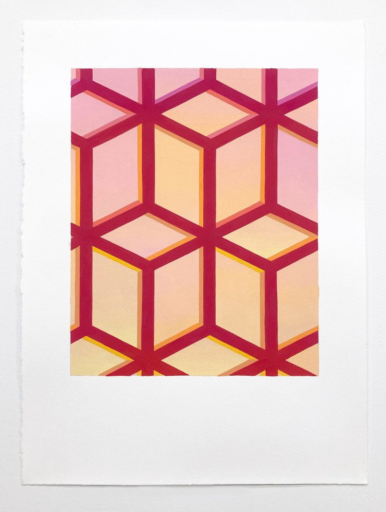 My main medium is color, as I think of my work as paintings, no matter the medium: oil painting, drawing, installation, collage, etc. I find inspiration in everyday patterns, textures, and spaces I photograph or sketch and use as references when creating my work. They fill the space and invite the eye of the viewer to explore the work as much as surface as representation.